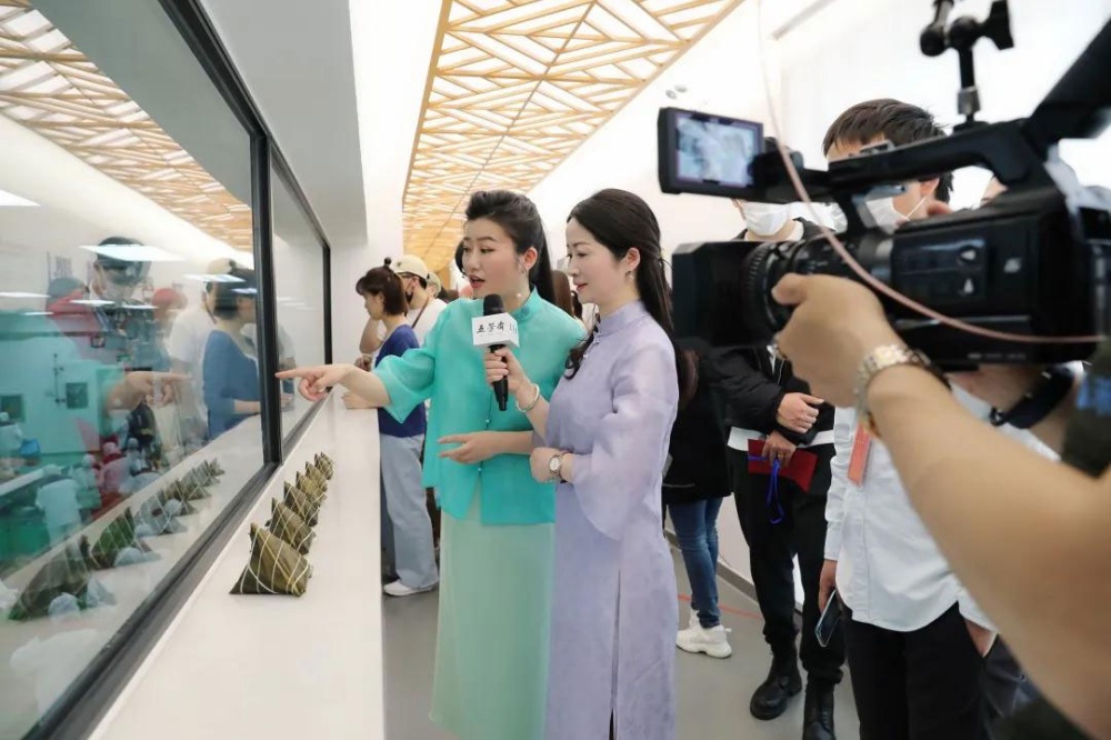浙江五芳齋實(shí)業(yè)股份有限公司副總經(jīng)理徐煒帶領(lǐng)主持人和嘉賓來(lái)到粽藝長(zhǎng)廊,參觀粽子從淘米、切肉到裹粽等生產(chǎn)流程,從糯源、糯藝、糯心三個(gè)維度感受五芳齋的拳拳匠心,深入了解中國(guó)源遠(yuǎn)流長(zhǎng)的粽子文化。