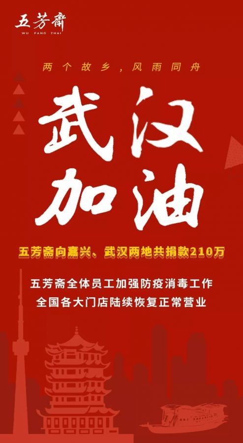 與你同在,五芳齋疫情預防措施全面升級! 2020-02-03 00:00:00 浙江五芳齋實業股份有限公司 瀏覽次數 21613 攜手同心,同舟共濟!齊心協力,共克時艱!五芳齋,一直都在你身邊!1月21日,我們第一時間啟動防控預案,率先下發了《關于門店做好防范新型病毒工作的通知》,要求門店做好員工培訓工作,重視疫情發展現狀,嚴格執行消毒操作,全面抓好各項防控措施。掌握員工尤其是湖北員工的身體狀況,建立好相關聯絡機制,做到密切關注、及時上報。與此同時,我們也緊急采取行動,為了讓全國所有五芳齋門店的消費者可以安心到店消費,也為了每一位五芳齋員工有安全健康的工作環境,我們對五芳齋各門店進行了門店預防措施全新升級! 門店:全面消毒 防護升級五芳齋各門店店內消毒全面升級,定期對店內所有公共接觸面進行消毒:包括收銀臺、出餐臺、桌椅、門把手、地面、洗手間等。 員工:上崗前測量體溫五芳齋所有門店員工上崗前均進行體溫測量和記錄,如有異常或有發燒或感冒癥狀,立即暫停服務就醫。勤洗手 勤消毒各門店均配備消毒洗手液,五芳齋的各位員工每隔30分鐘進行洗手和消毒。隔離病毒,不隔離愛除了做好門店、員工的防護措施,五芳齋還通過各種渠道為抗擊疫情一線人員提供支援,在嘉興、上海、杭州、武漢等地,通過向一線醫護人員、隔離人員提供餐食等舉措,幫助他們共同抗擊疫情。現在正是疫情防控的重要時刻。五芳齋在此呼吁:當您進入公共場所時,戴口罩、勤洗手、少出門,少一次聚會,多一分安全。重視防護,共克時艱!艱難時刻,我們在一起!2020年2月3日起,五芳齋全國門店陸續恢復營業,五芳齋持續關注疫情,武漢加油!中國加油! 上一條生命重于泰山、疫情就是命令、防控就是責任 下一條中秋公益行?美味暖人心——五芳齋幸福傳遞助學活動圓滿成功!